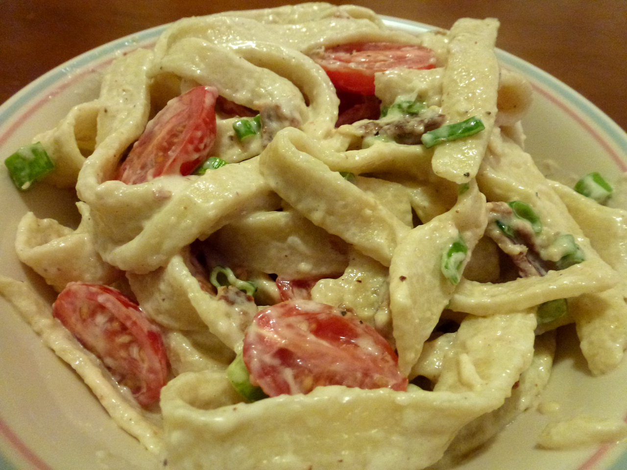 I was feeling ambitious last weekend. I had already decided to make BLT Linguine for dinner but, when I went to check to see whether I had all the ingredients, I noticed I didn’t have any linguine. I considered going to the store, but then decided I was up to the challenge of making linguine from scratch. In “High Flavor, Low Labor,” Associated Press Food Editor J.M. Hirsch says pasta is easy to make. I decided to see if he was right. It turns out making the pasta dough is easy, but the shaping process is challenging if you’re doing it by hand.