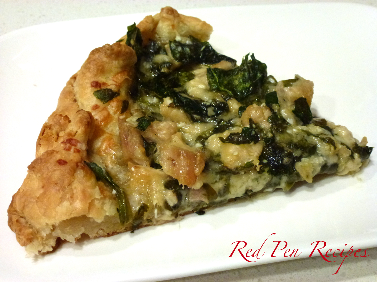 The first recipe I tried from the cookbook was the recipe for a Butternut Squash and Caramelized Onion Galette. While the galette didn’t turn out quite as I had hoped—I halved the recipe and forgot to use half the olive oil, so that overpowered the flavors and made it oily—I loved the recipe for the pastry part. It had a lovely flakiness about it. Since I still had half of it in the fridge, I decided to make my own combination with leftover chicken, spinach, and Parmesan. It was fantastic.